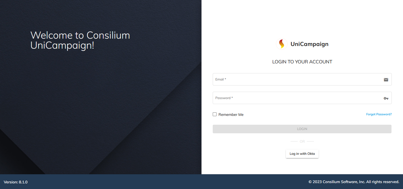 The UniCampaign™ login page serves as the entry point to access the platform, requiring users to provide their credentials for authentication and secure access to UniCampaign's features and services.